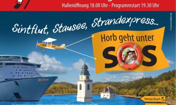 Das Motto des Eröffnungsballes 2020 lautet: Sintflut, Stausee, Strandexpress:Horb geht unter, SOS! Am 1. Februar 2020 geht’s in der Rundhalle wieder in die Vollen: ein abwechslungsreiches Programm, spannende Videoclips und beste kulinarische Betreuung garantieren Euch einen tollen Abend! Der Kartenvorverkauf startet am 18. Januar um 10 Uhr in der Markthalle auf dem Horber Flößerwasen