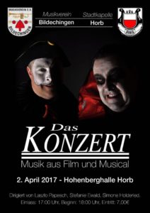 Unsere Freunde der Horber Stadtkapelle veranstalten am 2.4.2017 ab 18 Uhr ihr Jahreskonzert, gemeinsam mit den Musikern des MV Bildechingen.
