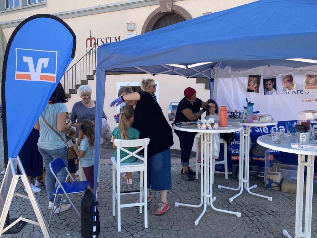 Die Narrenzunft Horb hat heute beim Kunsthandwerkermarkt in Freudenstadt mit Kinderschminken die Volksbank Freudenstadt unterstützt und den zahlreichen Kindern ein Lächeln ins Gesicht gezaubert.