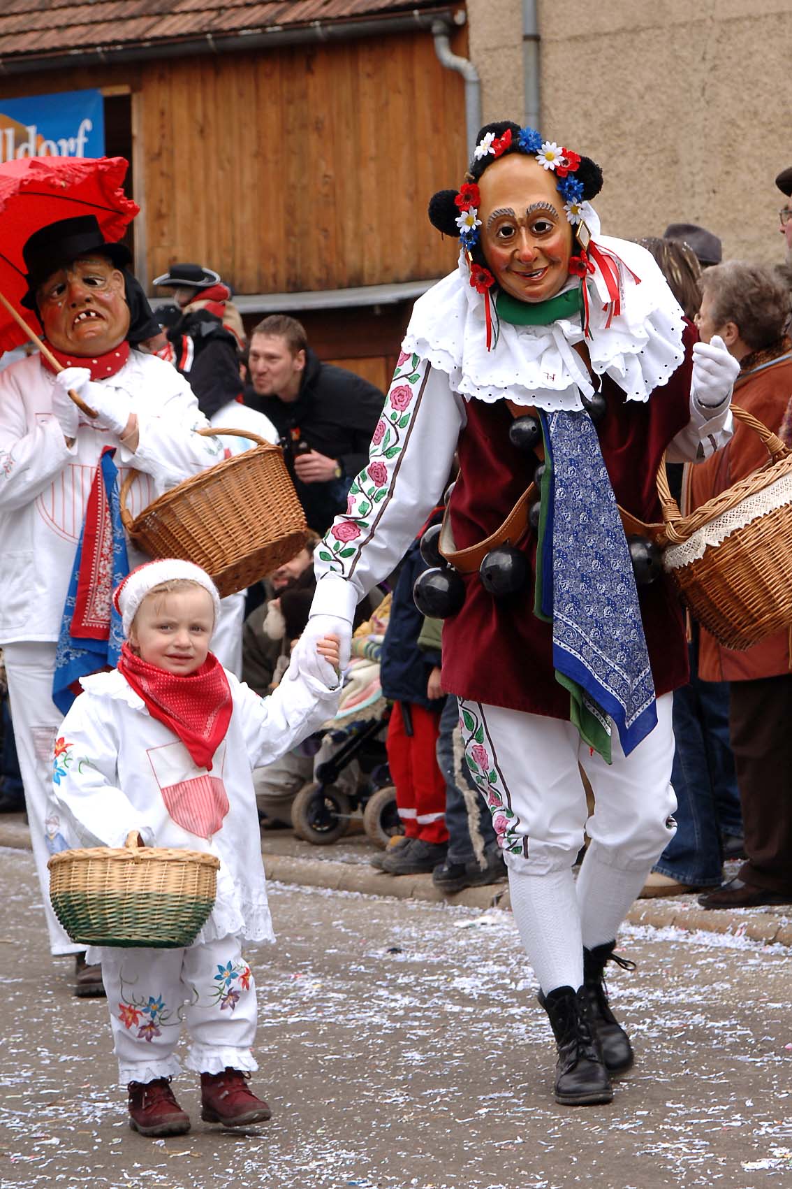 Hier kann man als Weißnarr, als Schellennarr oder auch im historischen Gewand als Mitglied des schönen alten traditionellen Hochzeitszuges mitmischen!